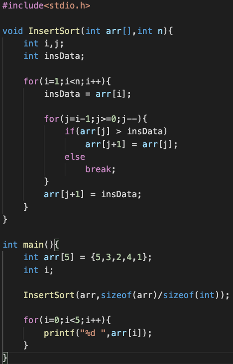 삽입 정렬을 보자.