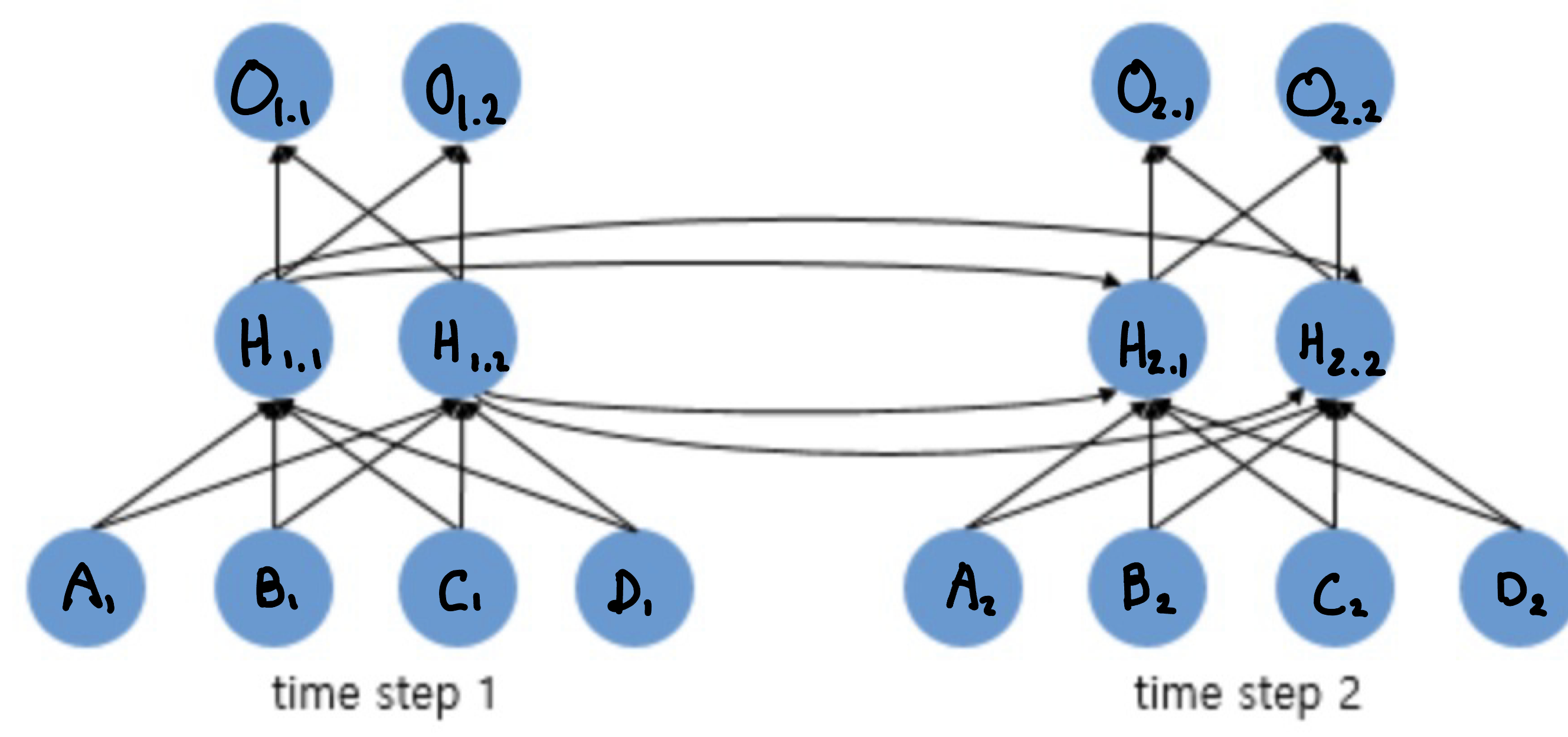 이전 타임 스텝에서 나온 결과값을 기억하고 있다가 해당 타임 스텝의 입력으로 사용한다.